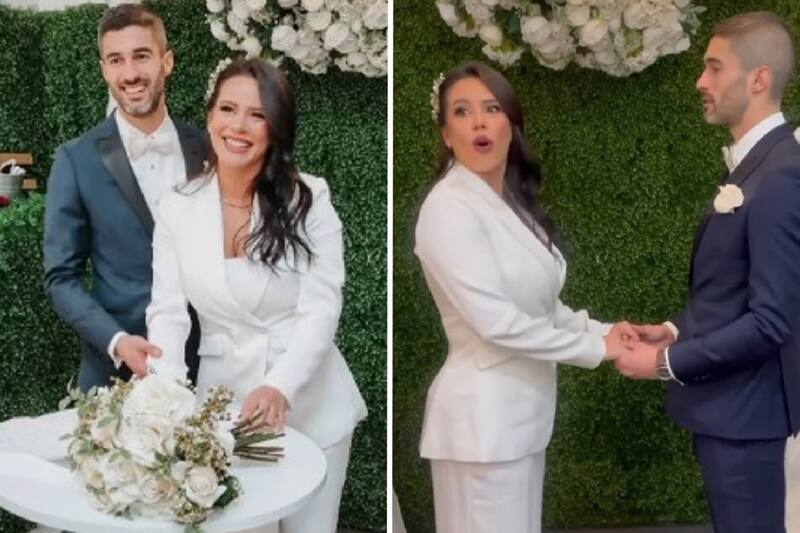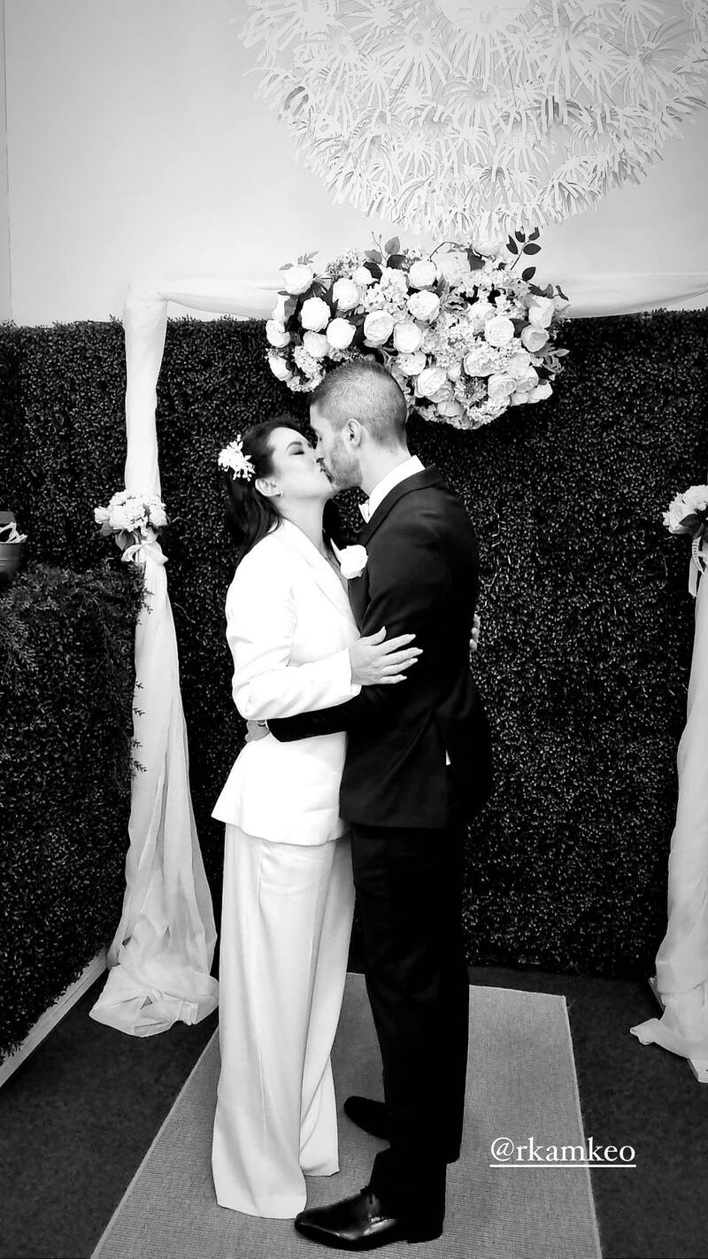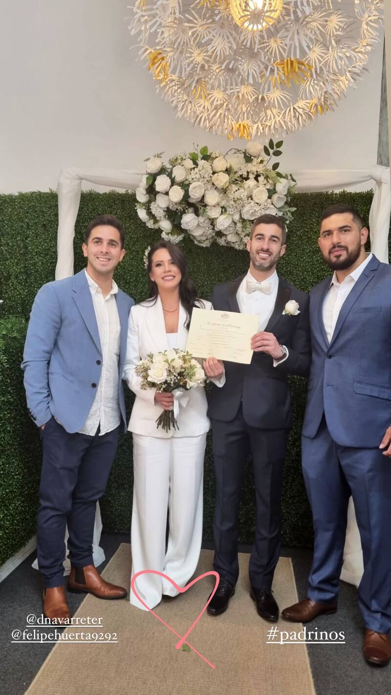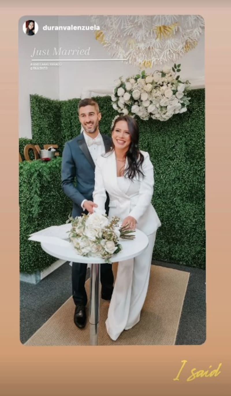 A través de sus historias de Instagram, Angie compartió algunas imágenes de la íntima boda que celebraron junto a sus familiares. Ella vestida de chaqueta y pantalón blanco. Él, de traje azul marino y camisa blanca.