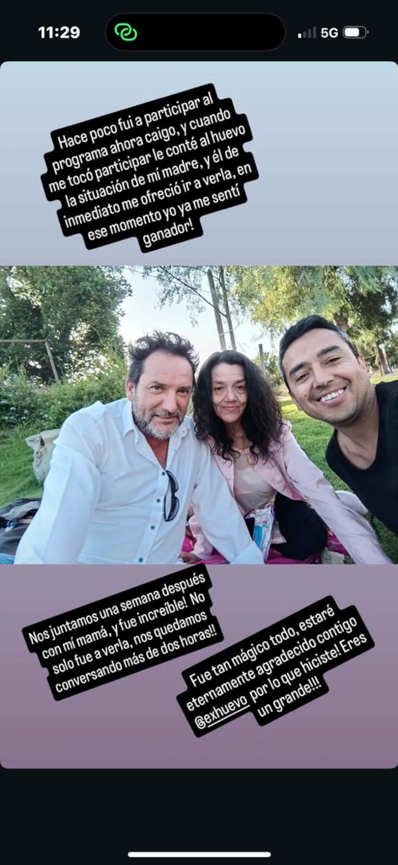 “Hace poco fui a participar al programa Ahora Caigo, y cuando me tocó participar le conté al huevo la situación de mi madre, y él de inmediato me ofreció ir a verla, en ese momento yo ya me sentí ganador”, contó Matías en su Instagram @mati.programador