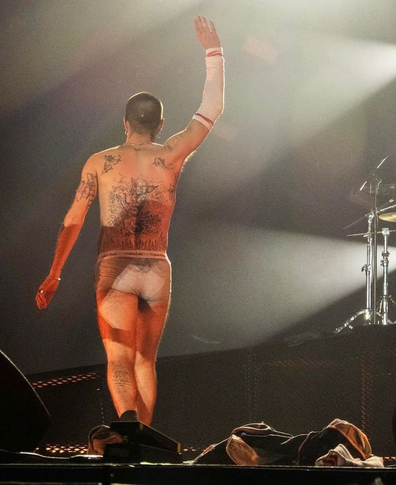 El artista, que se caracteriza por su sensualidad, comenzó el concierto vestido, pero conforme fue avanzando el show, se sacó toda la ropa y quedó solo en boxer.