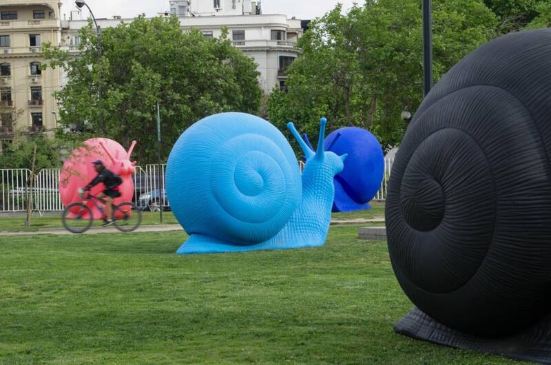 Los capitalinos podrán ver nuevamente a los huevos fritos gigantes que fueron colocados en Plaza Italia, el año 2016. También los caracoles de colores de Cracking Art los que sorprendieron a la gente en Santiago y Valparaíso en 2018.