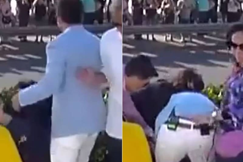 Situación ocurrió mientras saludaba al público presente.