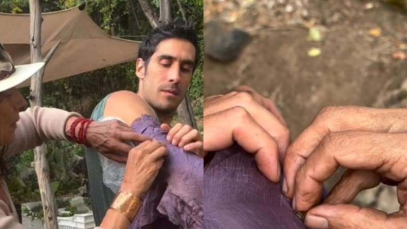 A través de sus historias en la mencionada red social, el influcencer documentó cómo su tía Soco le aplica picaduras de abeja en el brazo, como terapia alternativa.