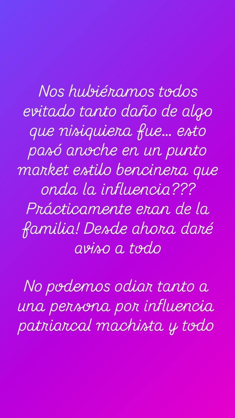 Luego, la joven expuso que “nos hubiéramos todos evitado tanto daño de algo que ni siquiera fue... esto pasó anoche en un punto market estilo bencinera”.
