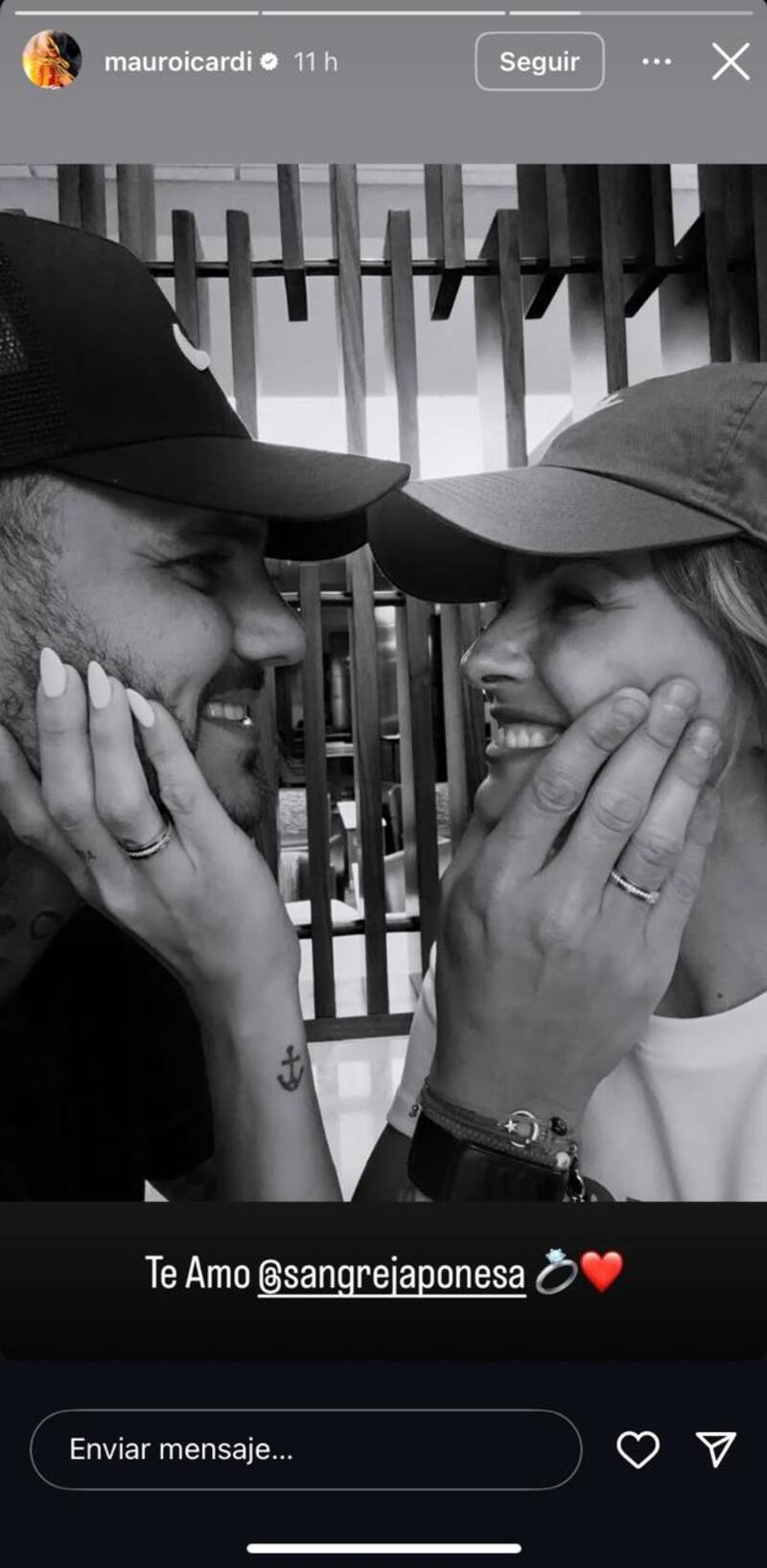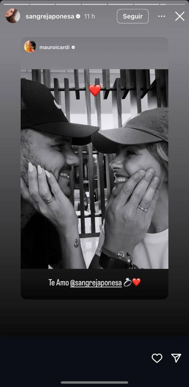 “Te amo @sangrejaponesa (usuario de IG de la actriz)”, expresó el futbolista desde sus historias de Instagram. Mientras que ella compartió el mismo posteo con un corazón en medio.