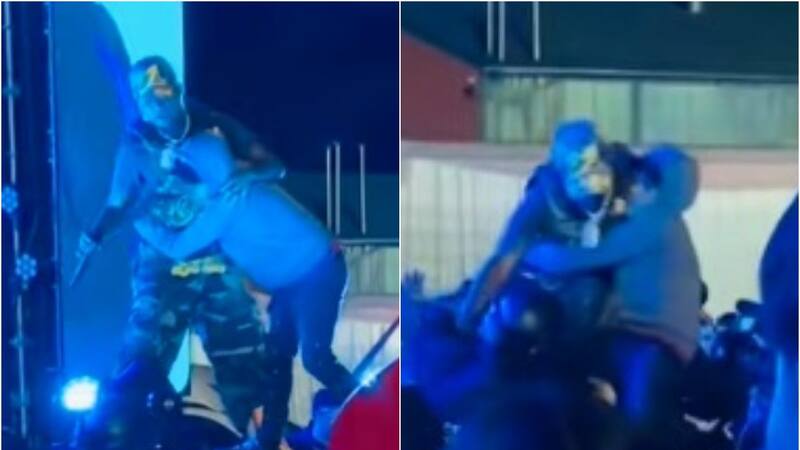 Tal como se puede ver en las imágenes que se viralizaron en redes sociales, se subió al escenario mientras el artista cantaba. Polimá lo ayudó a ponerse de pie, el fan abrazó al artista y terminaron ambos cayeron de la tarima.