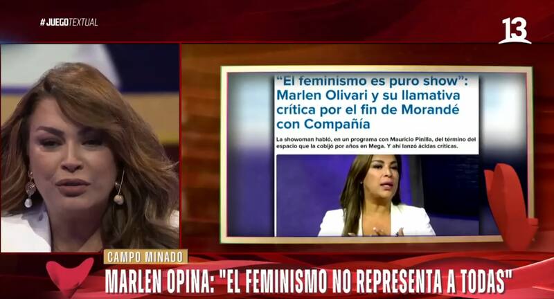 Un álgido debate protagonizó Marlen Olivari con las panelistas del programa Juego Textual, de Canal 13, donde analizaron su crítica postura sobre el movimiento feminista en Chile.