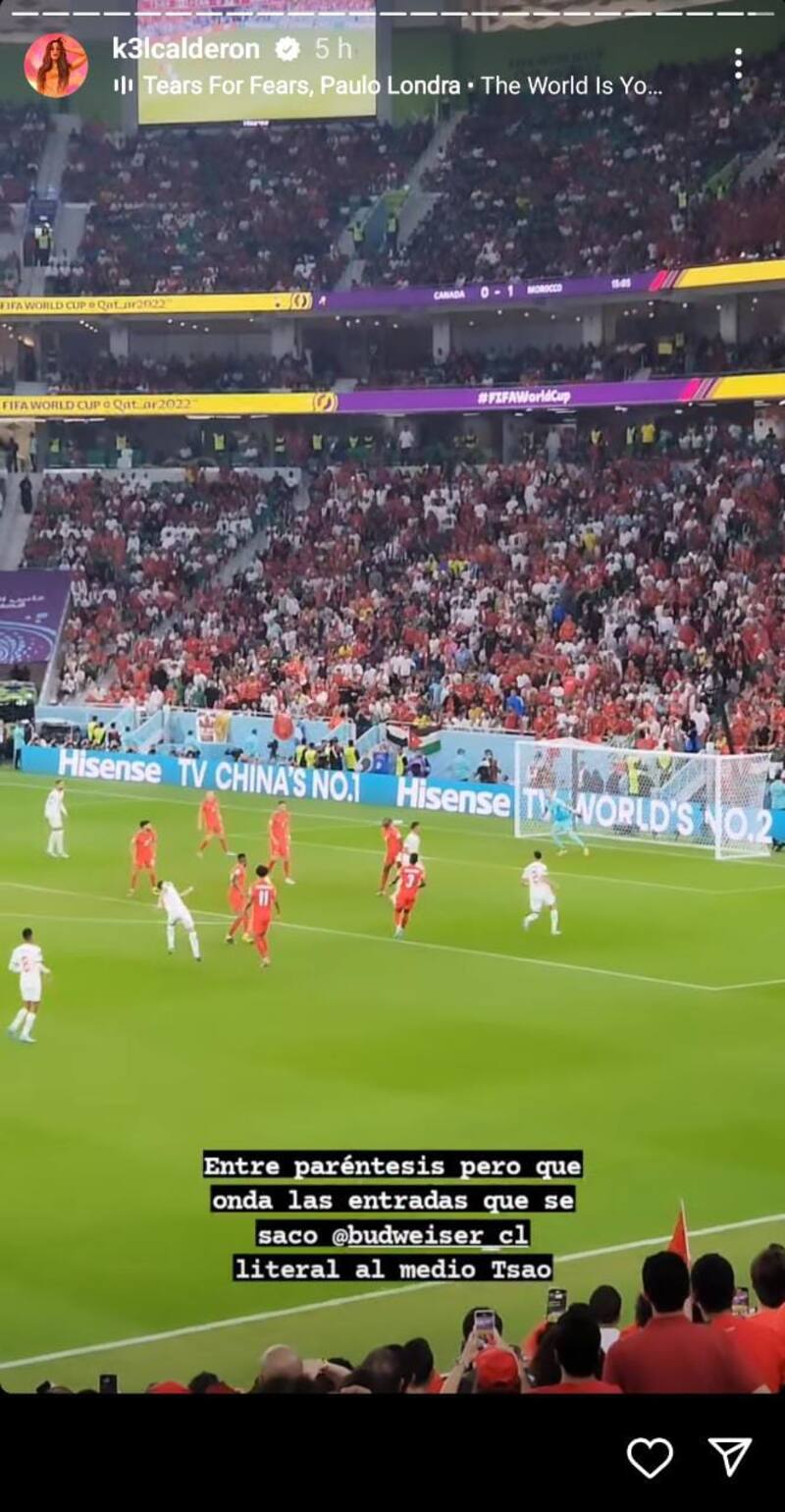 “Con mi @K3lCalderon viendo Marruecos vs Canadá”, señaló posando en el estadio y posteriormente mostrando el ticket del partido.