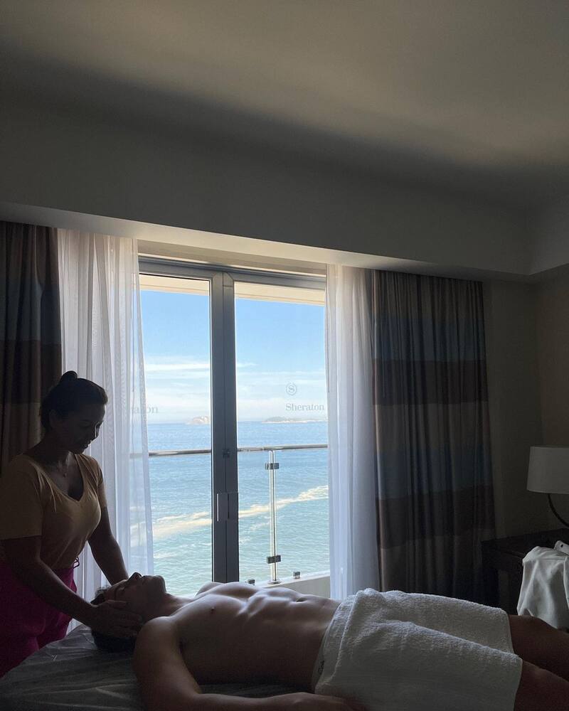 Sino también una foto que posteó donde aparece solo con una toalla cubriéndole sus partes íntimas mientras recibe un masaje.