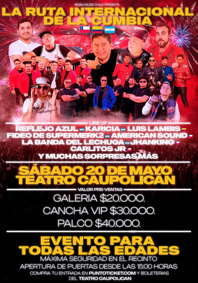 Se trata de La Ruta de la Cumbia un gran evento que promete hacer bailar de principio a fin a todos quienes asistan ya que contará con grandes artistas nacionales e internacionales como karicia, Luis Lambis, Amerikan Reflejo Azul, La Banda del Lechuga, y Sergio David Galván