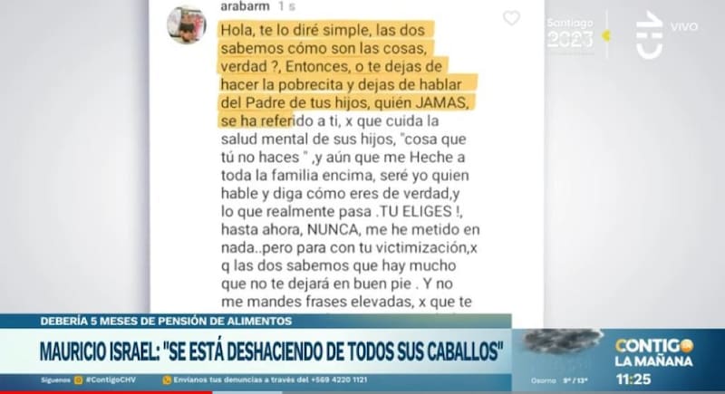 Durante este miércoles “Contigo en la Mañana” emitió un reportaje donde habló sobre la polémica que envuelve al futbolista, Arturo Vidal, donde Mauricio Israel aseguró que el jugador estaba viviendo una severa crisis económica y que debe cinco meses de pensión alimenticia a la madre de sus hijos, Marité Matus.