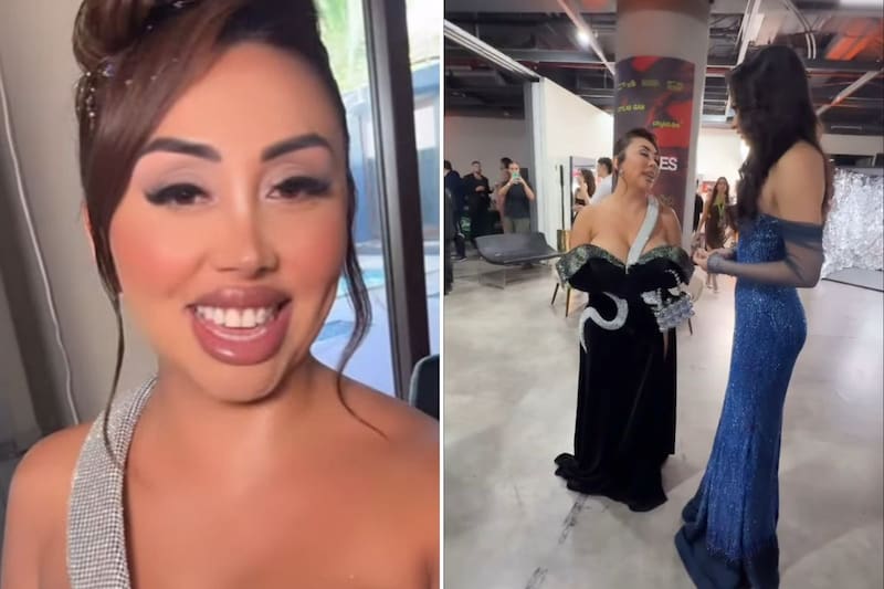 La influencer sacó diferentes reacciones en la alfombra roja de los Copihue de Oro. Fue captada junto a Emilia Dides, en un comentado momento del evento.