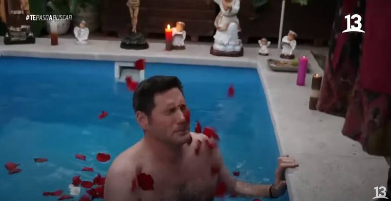 En pleno invierno, Saavedra tuvo que meterse a una piscina mientras la vidente le arrojaba pétalos de flores.