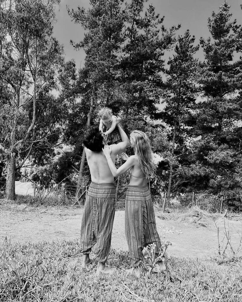 La intérprete, su pololo Camilo Figueroa y su hijo Galo, se lucen en tenidas relajadas combinadas, de espalda y junto a uno de sus tres perros regalones.