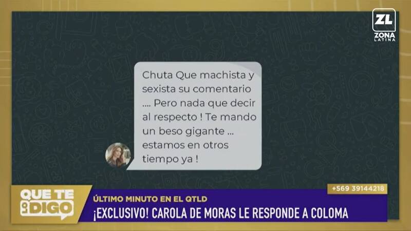 El periodista reveló que le escribió a la animadora, quien en una primera instancia le respondió que “no lo ví, nada que decir”. Por lo mismo, el panelista le envió un link con la nota de los dichos de Coloma.