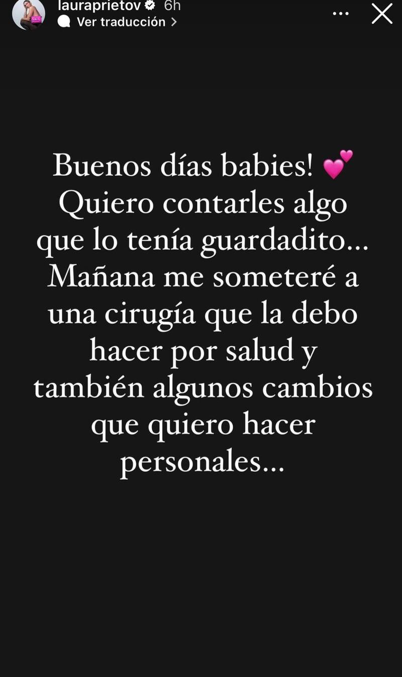 “Buenos días babies. Quiero contarles algo que lo tenía guardadito”, dijo de entrada en la plataforma virtual. Y sobre la misma, agregó: “Mañana me someteré a una cirugía que la debo hacer por salud y también algunos cambios que quiero hacer personales”.