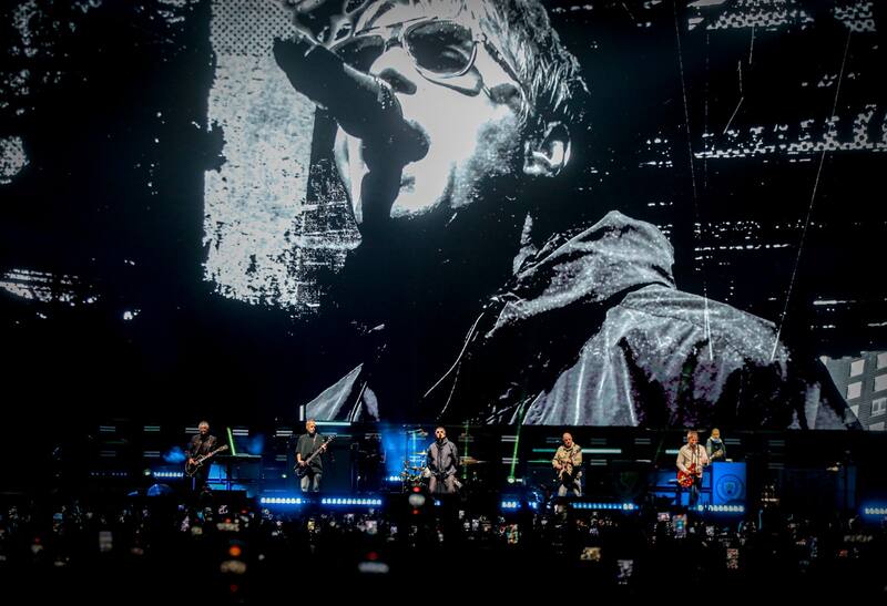 Fue entonces cuando la presentación alcanzó su equilibrio más alto: las jugarretas de Liam, la sobriedad serena de Noel, la precisión de una banda afilada y una puesta visual impecable con tres pantallas gigantes que amplificaban cada gesto.