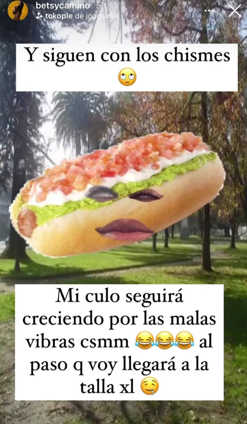 A través de su cuenta de Instagram, compartió dos historias que estarían relacionada con el tema. "Y siguen con los chismes", escribió junto al emoticón de una carita pensante. Y sobre la misma, agregó con humor. Mi cu... seguirá creciendo por las malas vibras. Al paso que voy llegará a la talla XL", bromeó.