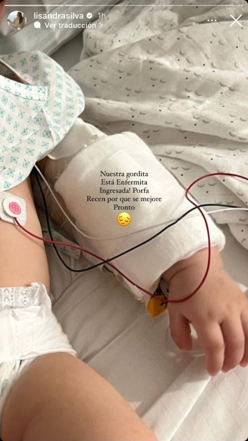 En la primera, muestra el brazo de la pequeña y escribió: “Nuestra gordita está enfermita ingresada. Porfa recen porque se mejore pronto”.