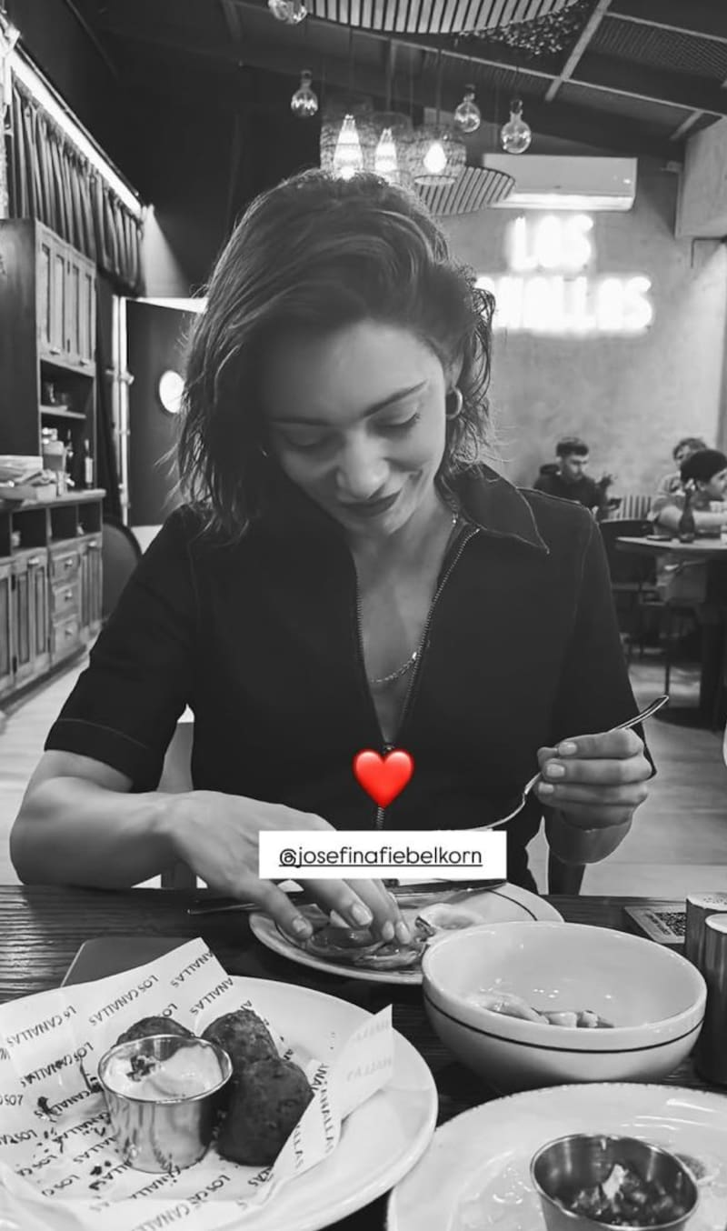 El registro en cuestión podría ser una simple comida entre amigos, sin embargo, lo que desató los rumores virtuales fue el emoticón de un corazón rojo que él añadió a la postal, mientras la actriz lucía sonriente aliméntandose de las otras que habían en su plato.
