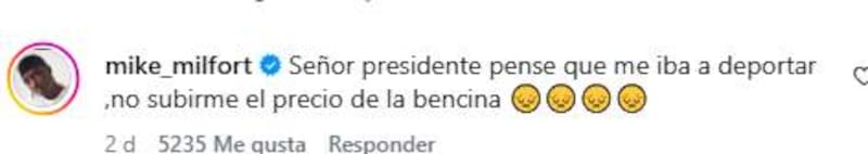 “Señor Presidente, pensé que me iba a deportar, no subirme el precio de la bencina”, le escribió en una de las publicaciones recientes que había compartido en Instagram, hace ya algunos días.