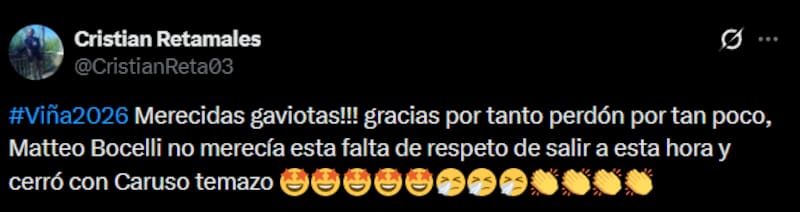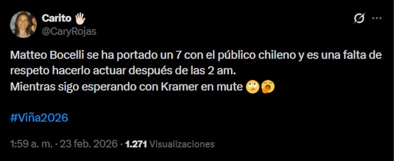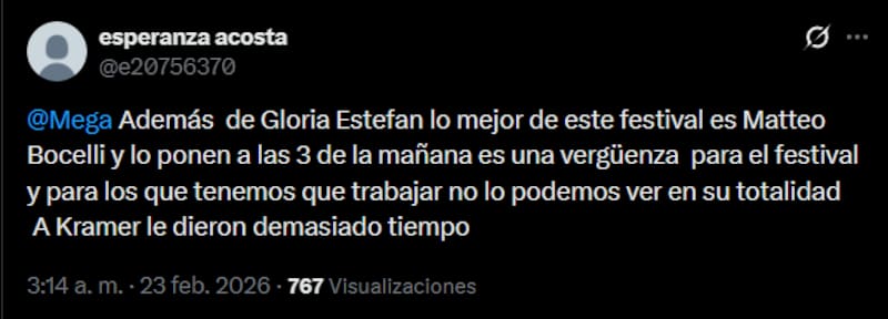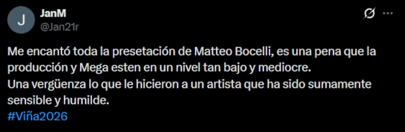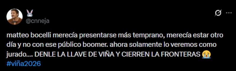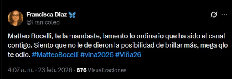 Por Bernardita VillaRedes sociales no perdonaron: la repetida y dura crítica al Festival tras la presentación de Matteo Bocelli
