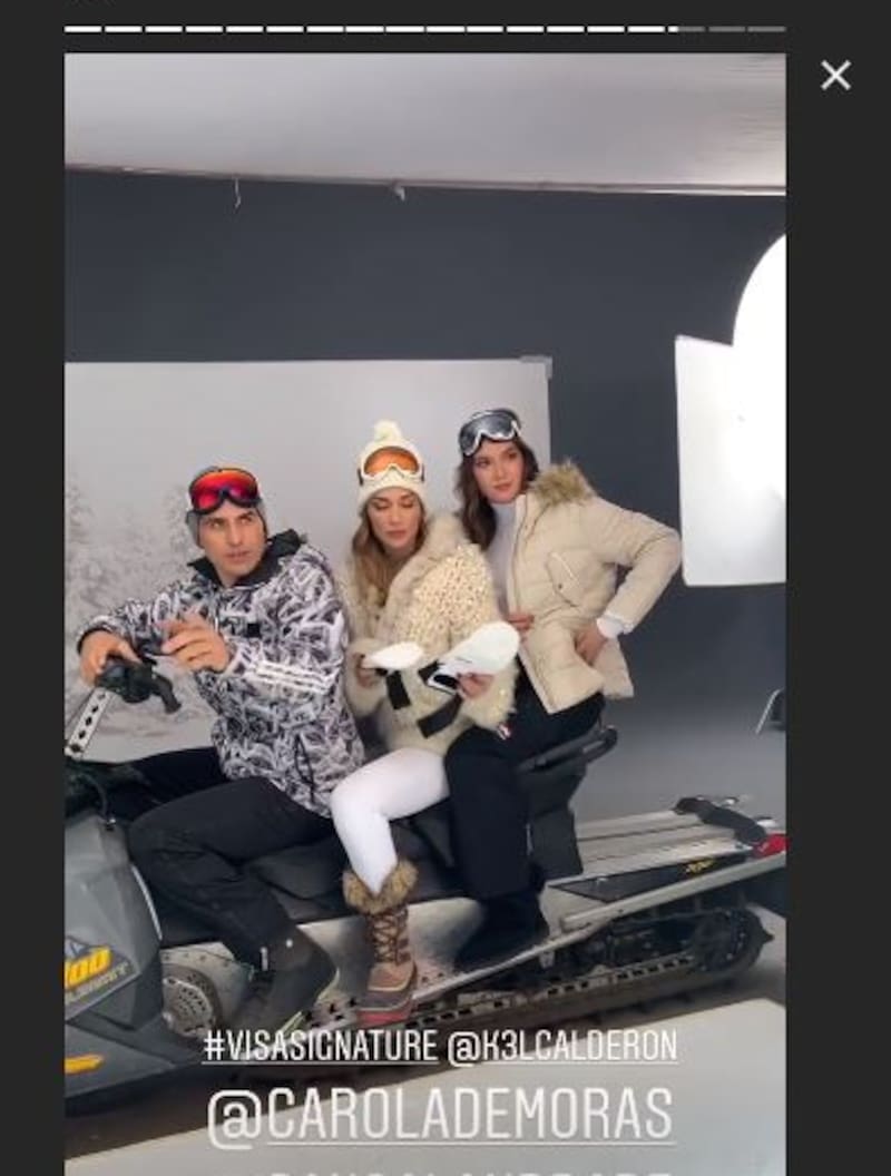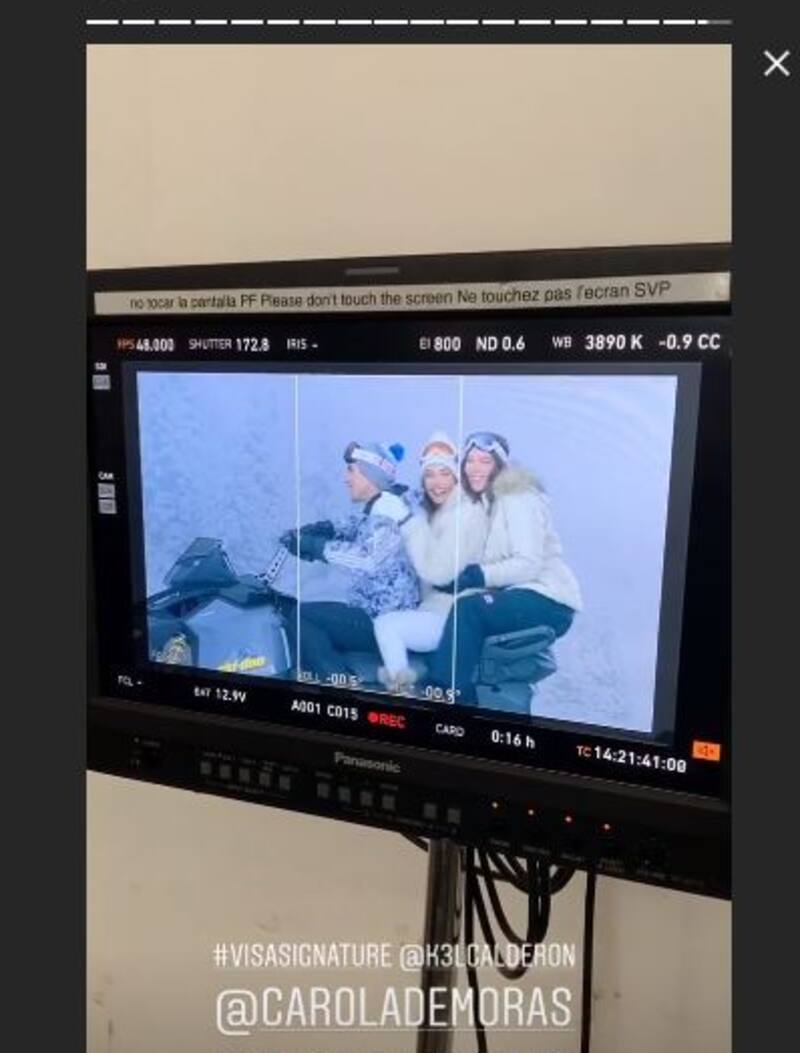 La expareja tuvo que grabar sobre una moto de nieve para lo que será es spot publicitario y sólo se reflejó simpatía entre ambos.