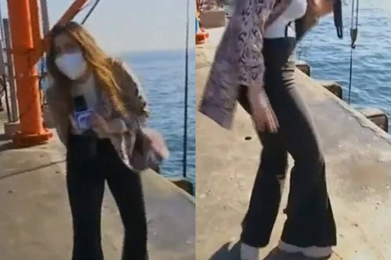 Su misión era entrevistar al público en el lugar, muchas personas que están de vacaciones de invierno. Varios transeúntes se encontraban compraban distintos productos del mar, en días que la región ha presenciado una sostenida disminución de casos de coronavirus