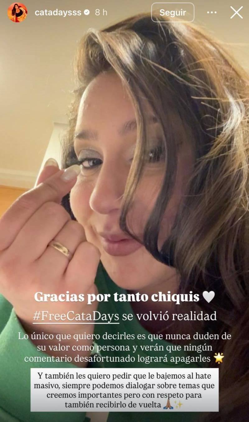Pero eso no es todo, pues ahora fue la propia Cata Days quien, en medio de todo este escándalo, se desahogó con una publicación en sus redes sociales.
