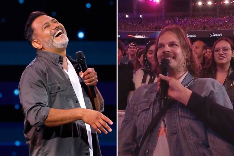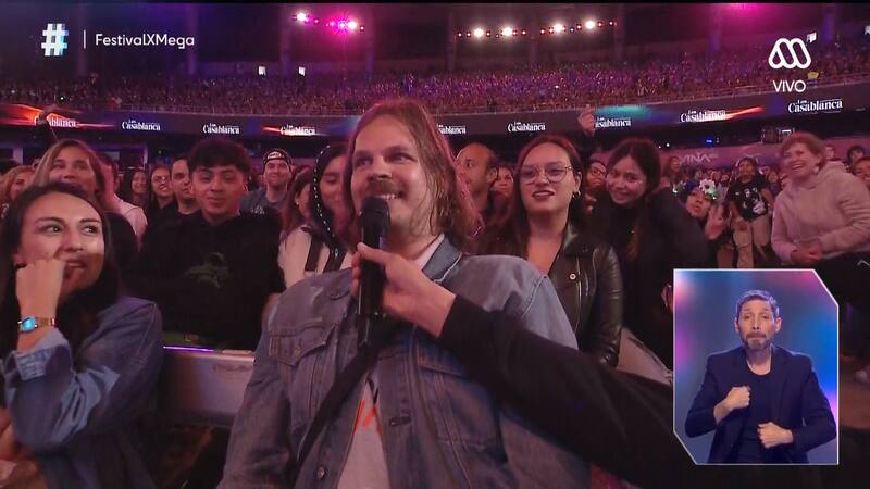 En un momento, el comediante pidió levantar la mano a los extranjeros presentes en la Quinta Vergara y un asistente, el mismo que trabaja con Felipe Avello, acercó un micrófono a algunos de ellos.