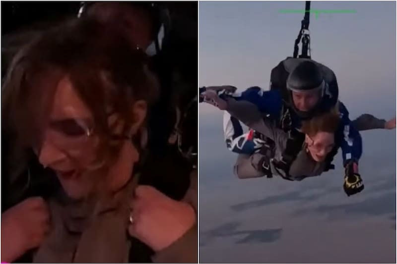 Tal como se pudo ver en los registros, la actriz ingresó al “regimiento” tras lanzarse en paracaídas desde un helicóptero.