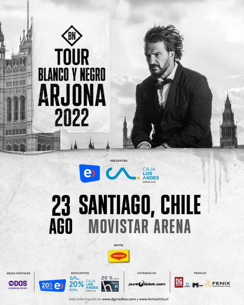 El regreso de Arjona al país se fijó para el próximo 23 de agosto, también en el recinto del Parque O'Higgins. En la ocasión presentará parte de sus últimos discos Blanco y Negro, cuyo material fue grabado en los legendarios estudios Abbey Road, en Londres, los mismos donde los Beatles registraron la mayoría de sus canciones.