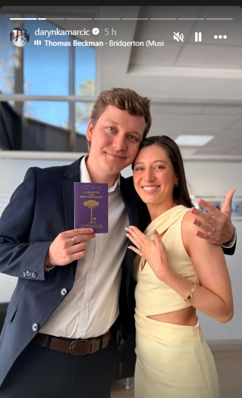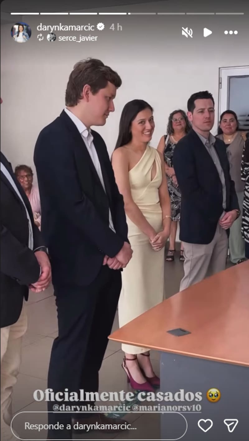 La periodista de Mega Darynka Marcic contrajo matrimonio por el civil la mañana de este viernes, con su novio, Mariano Serse.