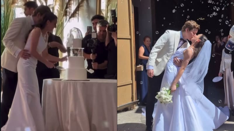 La reportera de Mucho Gusto llegó a la ceremonia realizada en la parroquia de los Ángeles Custodios en Providencia, luciendo un imponente vestido de novia con un velo de cinco metros de largo y una falda de tres metros.