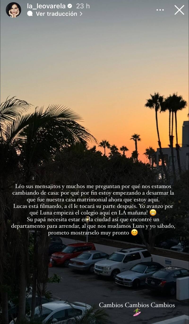 Además, contó que “yo avanzo porque Luna (su hija) empieza el colegio aquí en L.A. mañana. Su papá necesita estar en la ciudad, así que encontré un departamento para arrendar, al que nos mudamos Luna y yo el sábado, prometo mostrárselo muy pronto”.