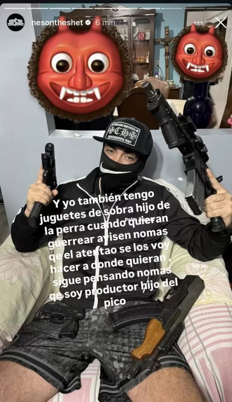 Pero aquel no fue el único post de Nes que se filtró en los últimos días, ya que T13 también publicó una imagen en la que el artista se ve posando con armas de fuego.