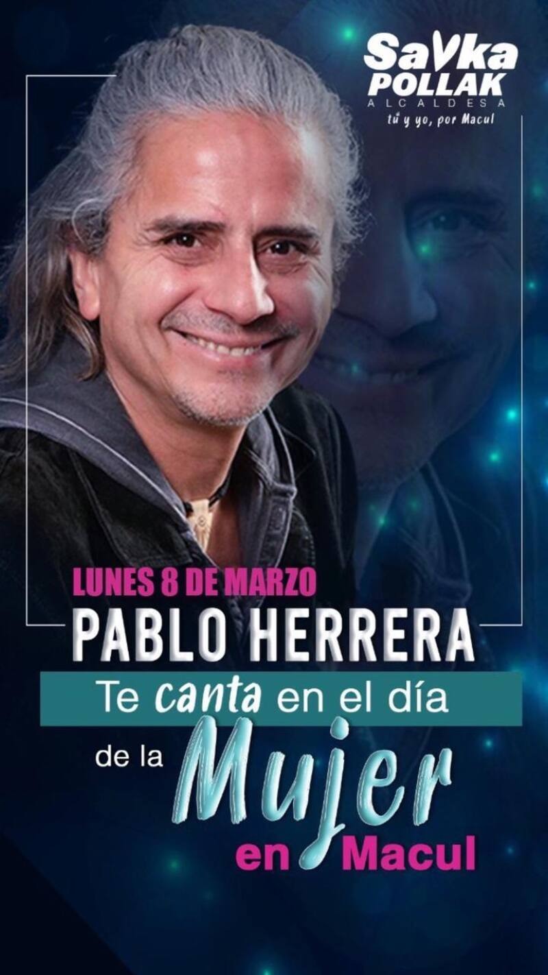 La candidata a alcaldesa por la comuna de Macul, Savka Pollak, ofrecerá una serie de mini conciertos itinerantes a cargo del cantante Pablo Herrera.
