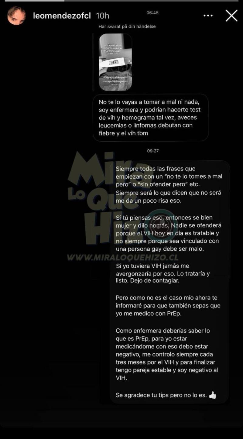 Leo, como era de esperar, respondió largo y tendido. Luego, tomó captura y la publicó en una nueva historia para que todos pudieran ver cómo se desarrolló la historia: