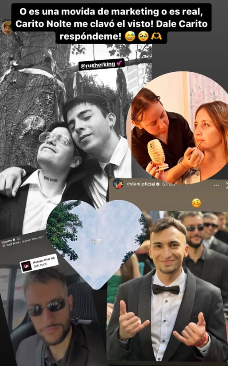 Según consignó Infobae, el fotógrafo Tomi Raimon, amigo de la pareja, fue uno de los primeros en encender los rumores de una boda al compartir una postal arriba de un auto con el texto: “Entienden que tengo un casamiento y se me manchó la camisa y ahora yendo a comprar una. Qué estrés”.