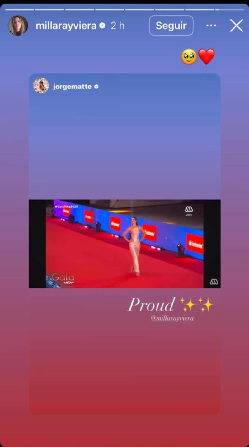 Durante la noche de la Gala, Jorge dio una nueva pista de que podría mantener una relación con Millaray, al compartir una foto de la comunicadora en su cuenta personal de Instagram.