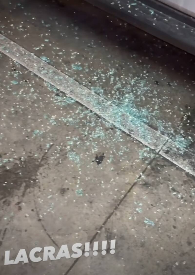 "Lacras“, escribió en el segundo registro donde se ven los vidrios esparcidos, evidenciando su molestia con los delincuentes.
