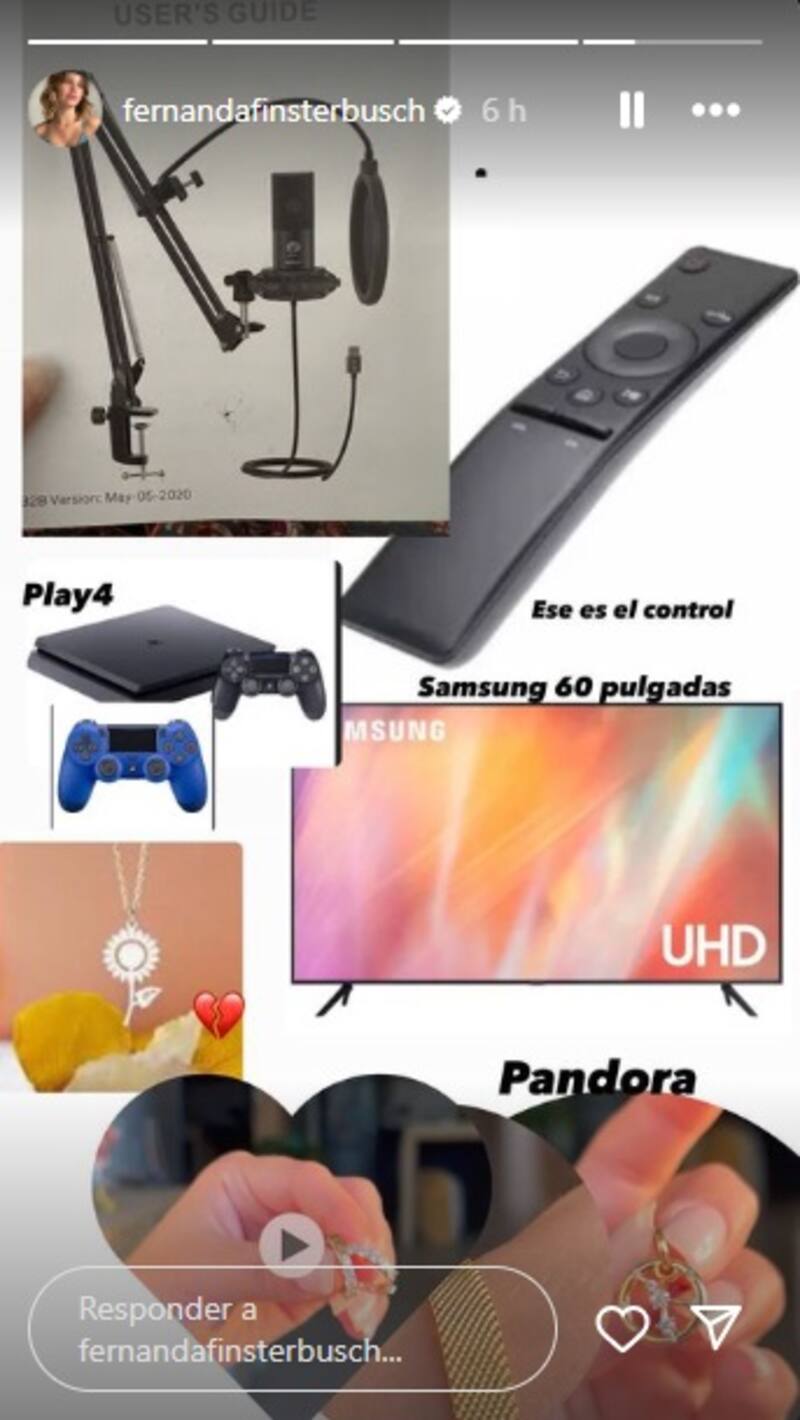 “Este sábado nos entraron a robar”, contó la actriz en sus historias. “Se llevaron todo lo de ‘valor’... No perdemos nada en subirlo acá por si alguien da con el paradero de venta de algunos artículos”, expresó.
