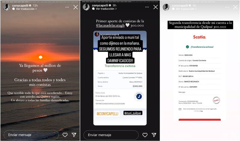 Posteriormente, la joven compartió un pantallazo mostrando un primer aporte de los “Conistas”, quienes enviaron $300 mil a la Municipalidad de Quilpué.