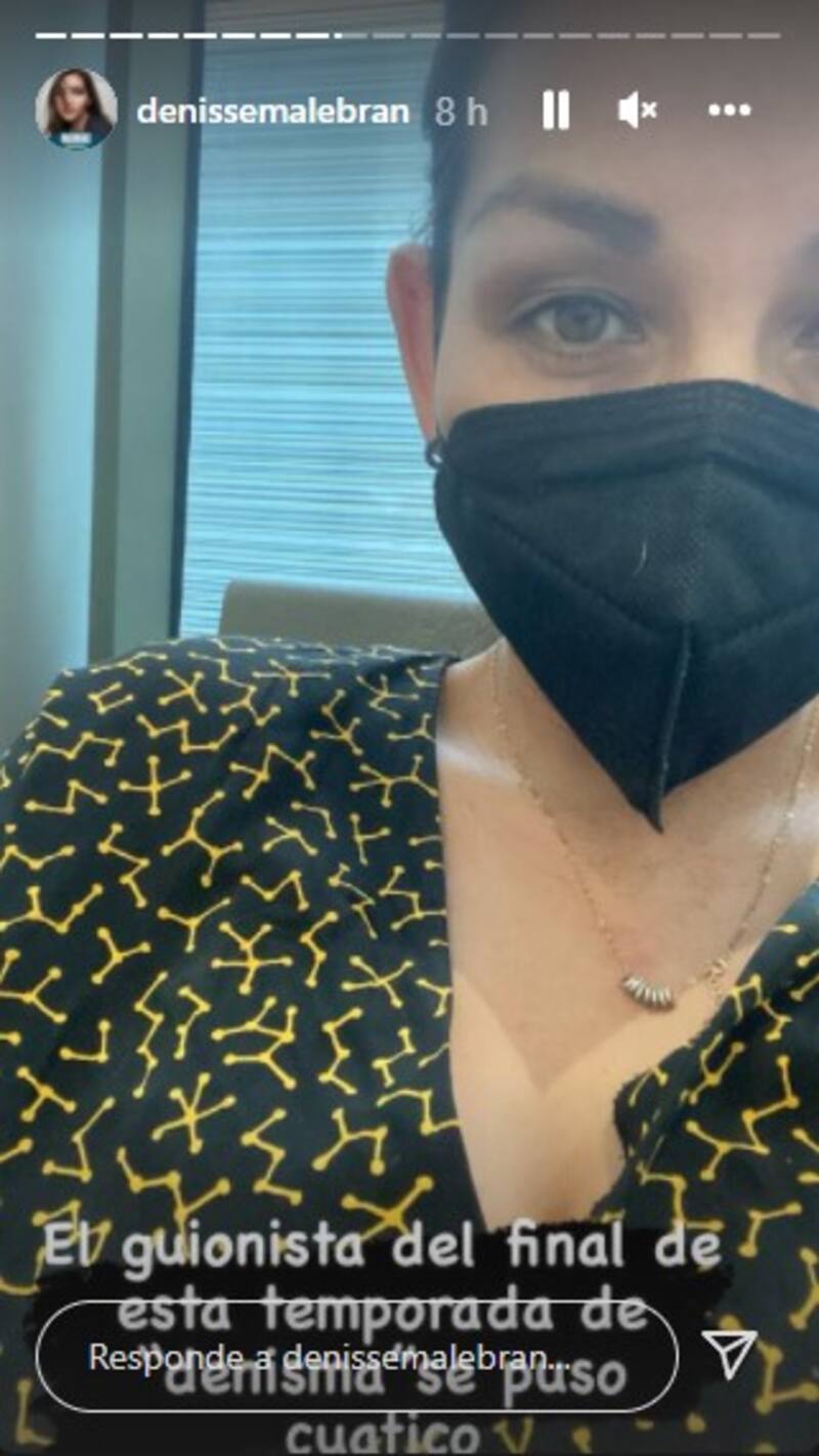 “El guionista del final de esta temporada de ‘Denisma’ se puso cuático”, detalló la ex participante de “The Covers: tributo a las Estrellas”, compartiendo una foto donde aparece su brazo junto a una aguja intravenosa.