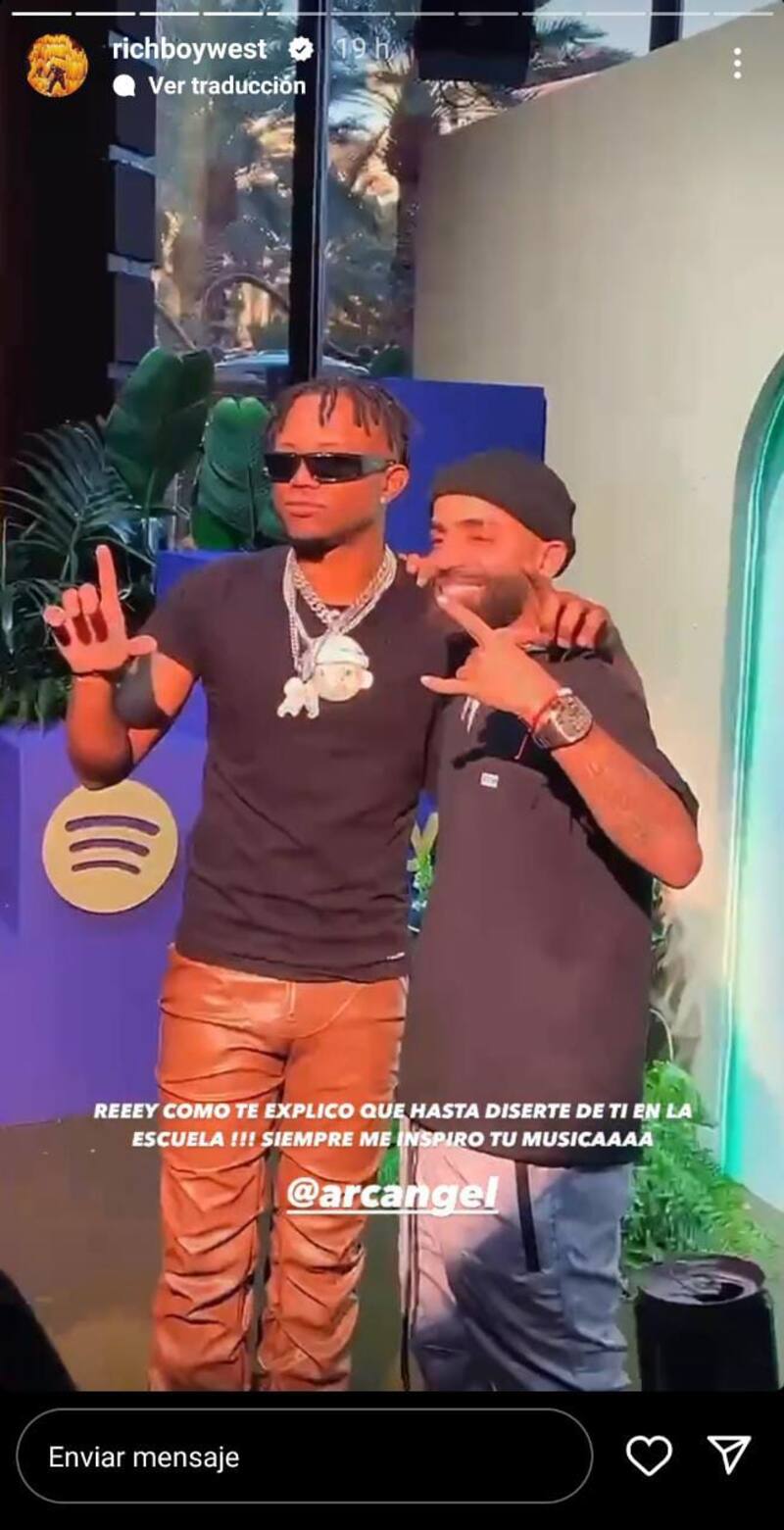 “Reeey, cómo te explico que hasta diserté de ti en la escuela!! Siempre me inspiró tu música @arcangel”, señaló en el video donde aparece saludando y posando con el artista estadounidense.