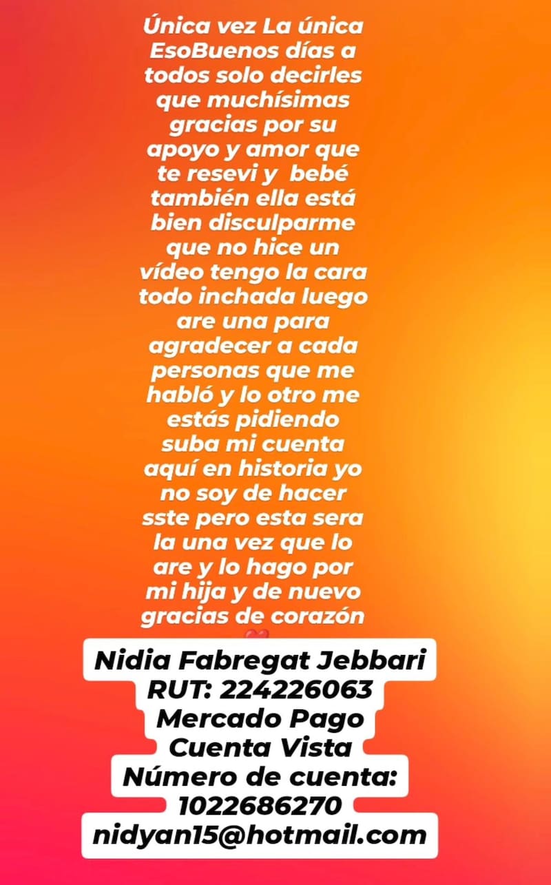 Sin ir más lejos, en medio de una confusa historia de Instagram, hizo pública su cuenta del banco para que quienes le puedan enviar sus aportes.