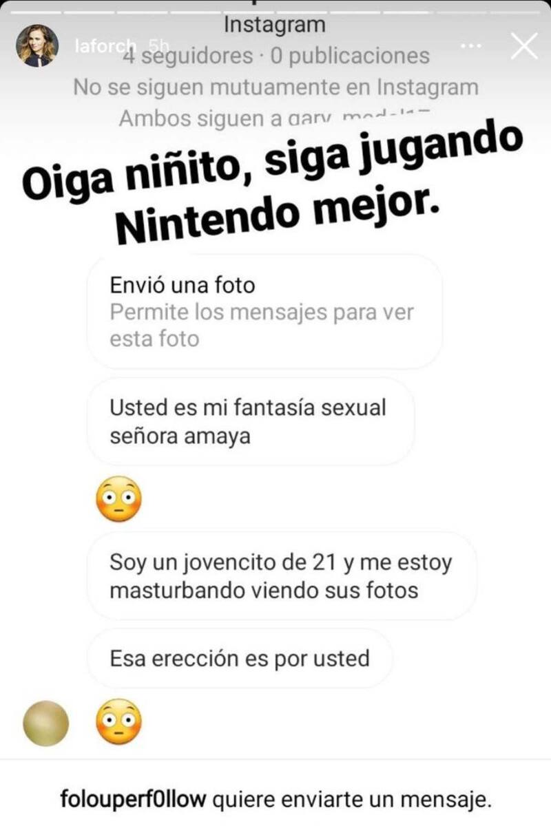 La actriz Amaya Forch sorprendió a sus seguidores tras exponer en sus redes sociales a un usuario que le envió mensajes indebidos en la web.