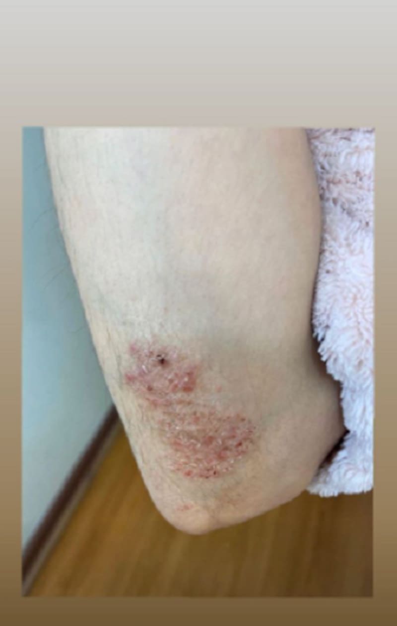"Hace poco era rostro, manos, espalda y brazos…Hoy solo quedan algunas zonas de eccema", comentó la influencer en la publicación.