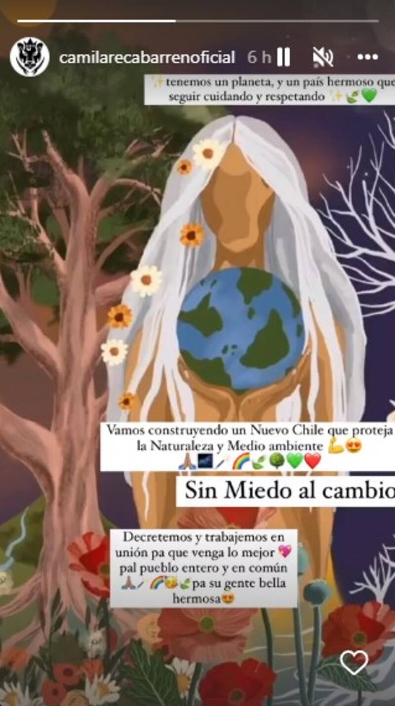 “Sin miedo al cambio. Decretemos y trabajemos en unión pa que venga lo mejor pal pueblo entero y en común, pa su gente bella hermosa”, agregó Cami Recabarren sacando aplausos de sus seguidores.