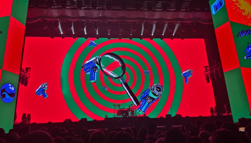 Más allá del propio efecto, agreguen el uso reiterado de recursos escénicos, como el telón que sube y baja en más de una ocasión o el uso de segmentos con lentes 3D. Esos son momentos que refuerzan la conciencia del artificio y la idea de que la recreación de Cerati necesita ocultarse un poco más de la cuenta para funcionar.