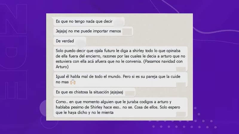 “En qué momento alguien que le juraba códigos a Arturo y hablaba pésimo de Shirley hace eso…”, cuestionó Castro. “No sé. Cosa de ellos. Solo espero que le haya dicho y no le mienta”, sentenció Daniela Castro.